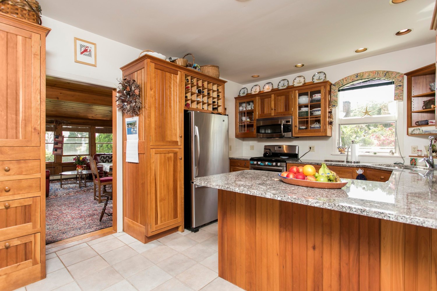 Enjoy this fabulous Ocean Point location all year long with views of Ram Island Lighthouse & crashing surf. This 4 bedroom, 3 bath home offers cottage charm with custom woodwork and modern amenities. Custom kitchen, large living room, and attached 2-car heated garage. A portion of the second floor can be a self contained living/rental area. Perennial waterside gardens offer beauty and privacy with a path to Grimes Cove Beach. Access to tennis and casino privileges with membership in the Ocean Point Colony Trust.
